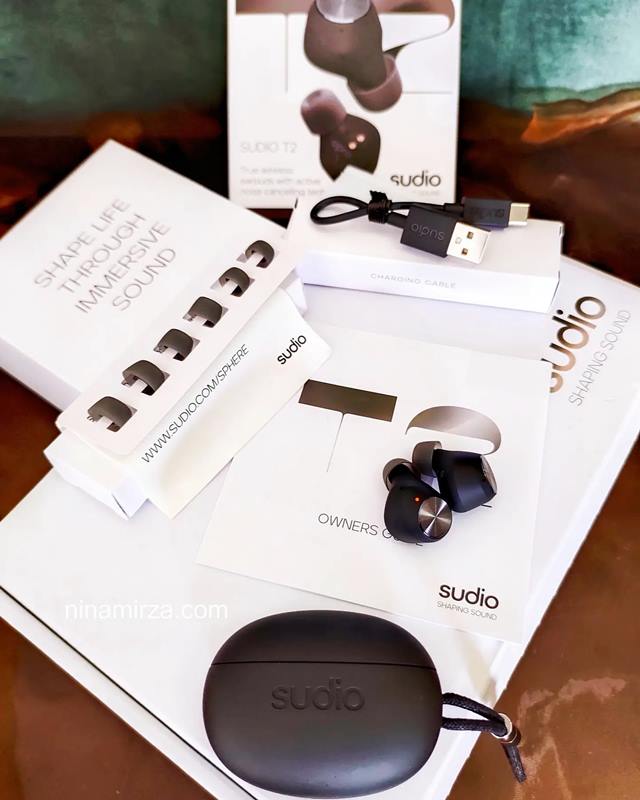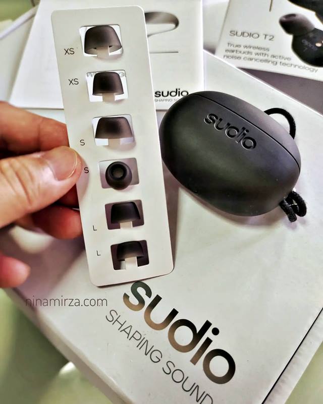 Sudio T2 ni bunyi smooth tak bingit, getah ear cover ada beberapa size, ngam ngam dok dalam telinga Nina yang kecik ni. Selesa pakai walau berejam lamanya! Material lak tahan lasak, waterproof. Puashati laaaa